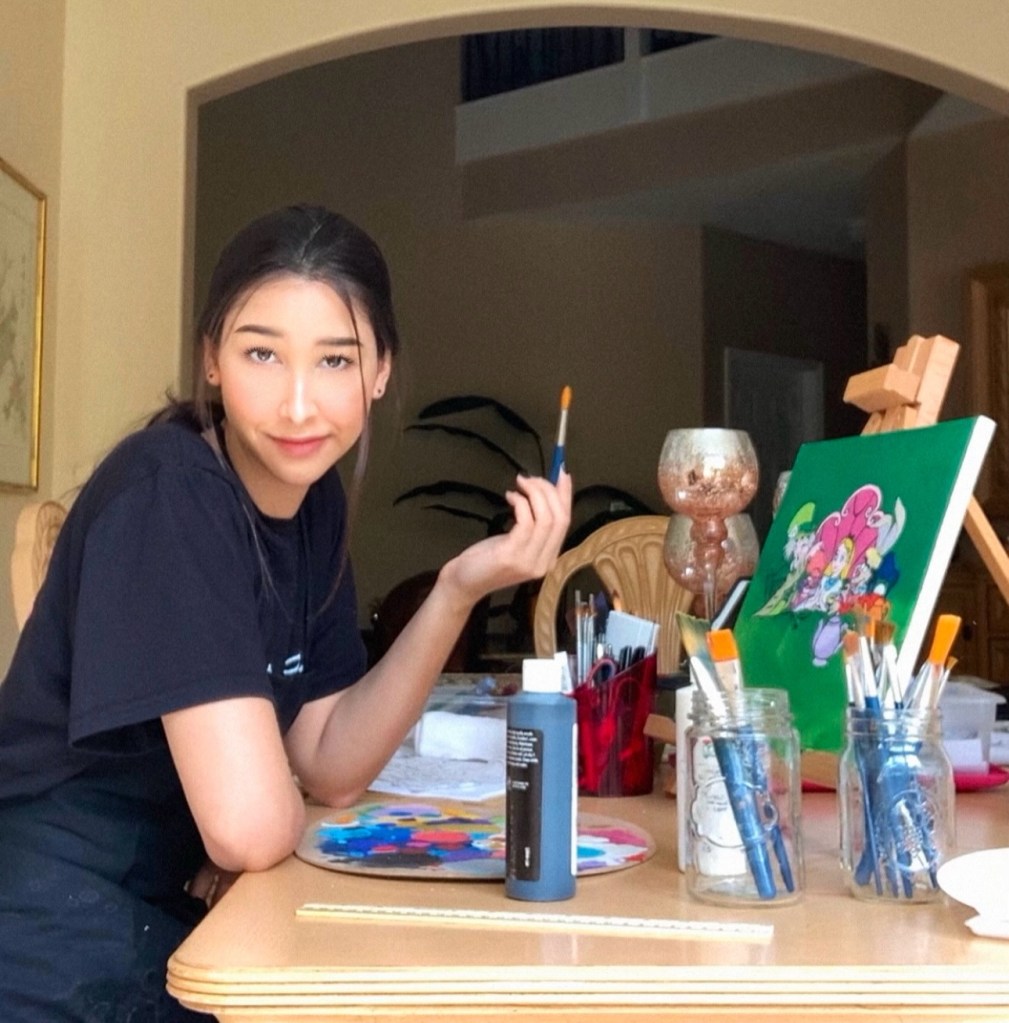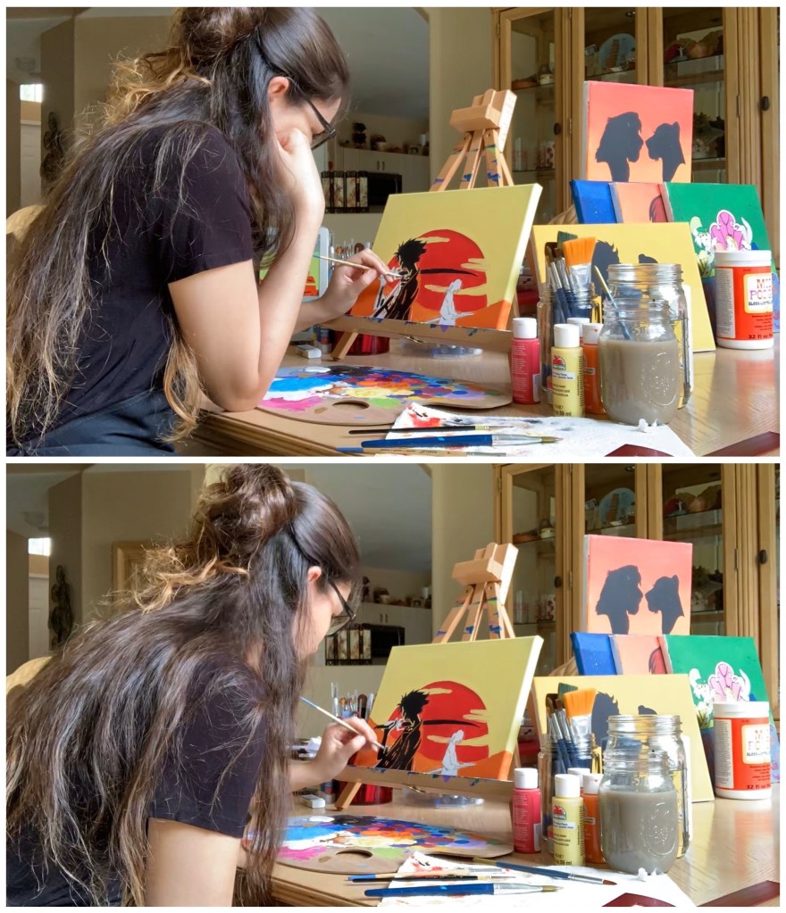 Even though drawing in 2D and painting on canvases keeps me sane, I haven’t stopped there. I’ve recently taken up another form of art called resin. It’s the pouring of epoxy into a mold and making something entirely new. While in quarantine I decided to start making things such as necklaces and keychains and even some bookmarks to sell on an Etsy shop. Taking commission requests from people and friends who want something specific has given me opportunities to interact with others online and feel less secluded when I’m home.